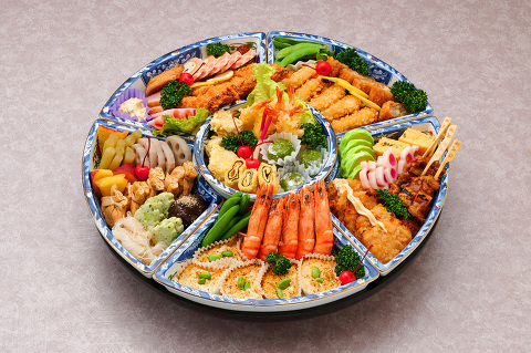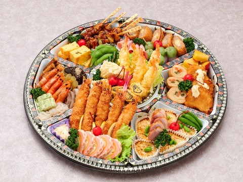 ボリューム満点オードブルと豪華なネタで彩り豊かなお寿司の盛り合わせ。