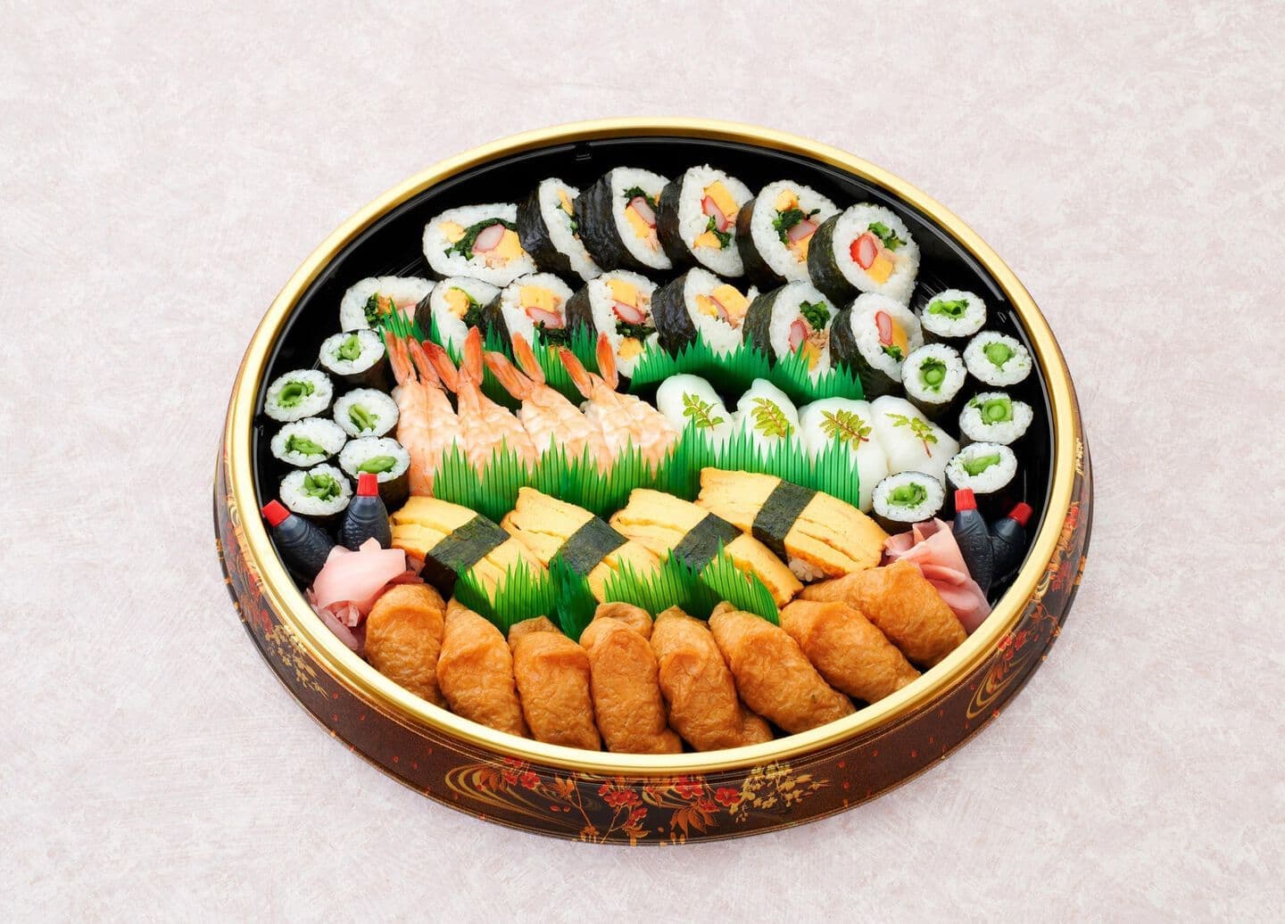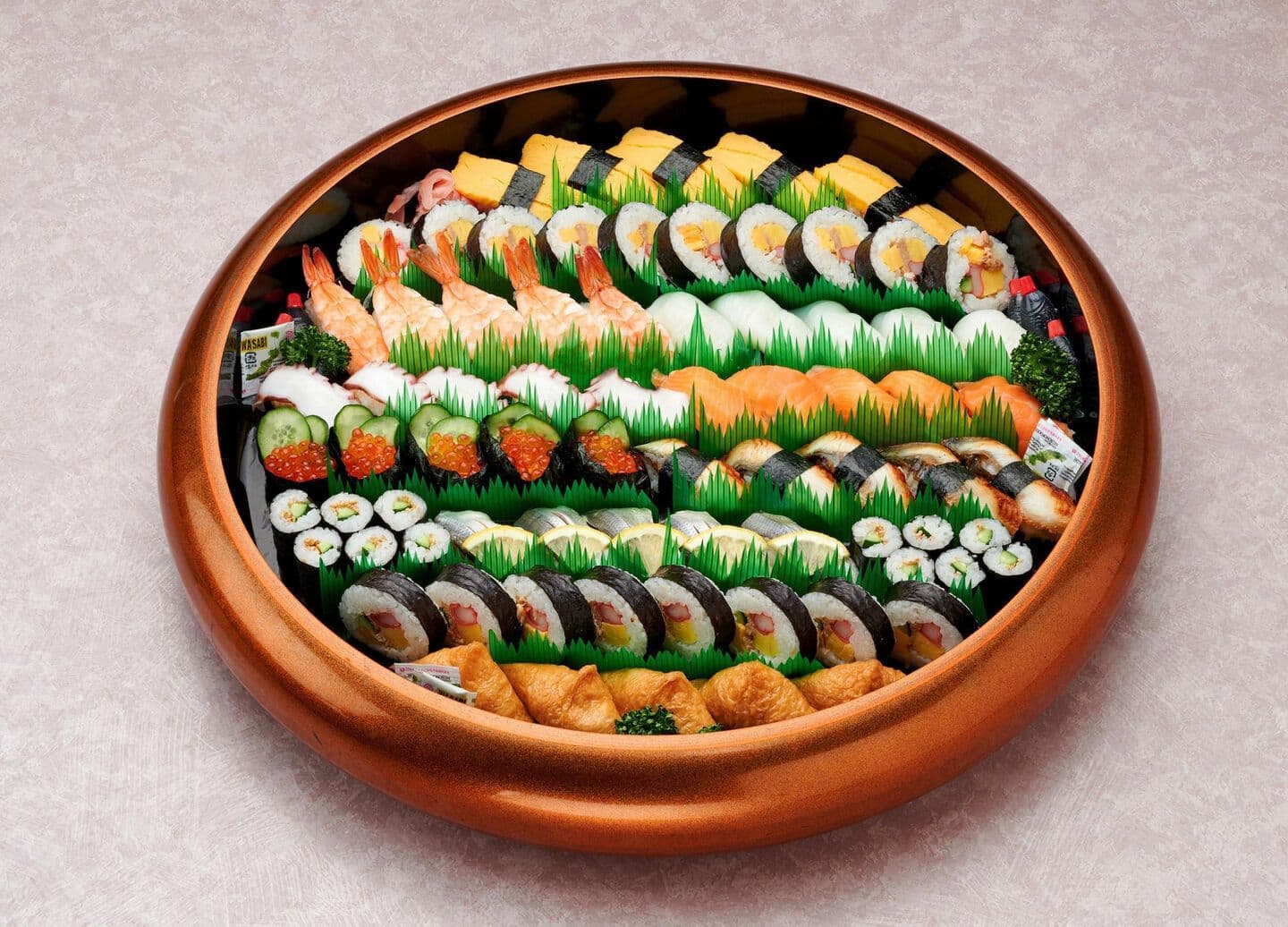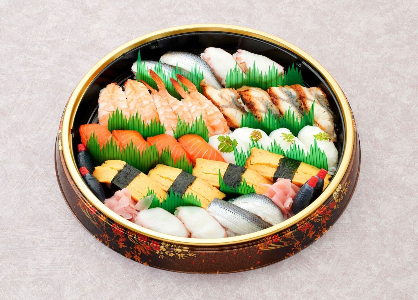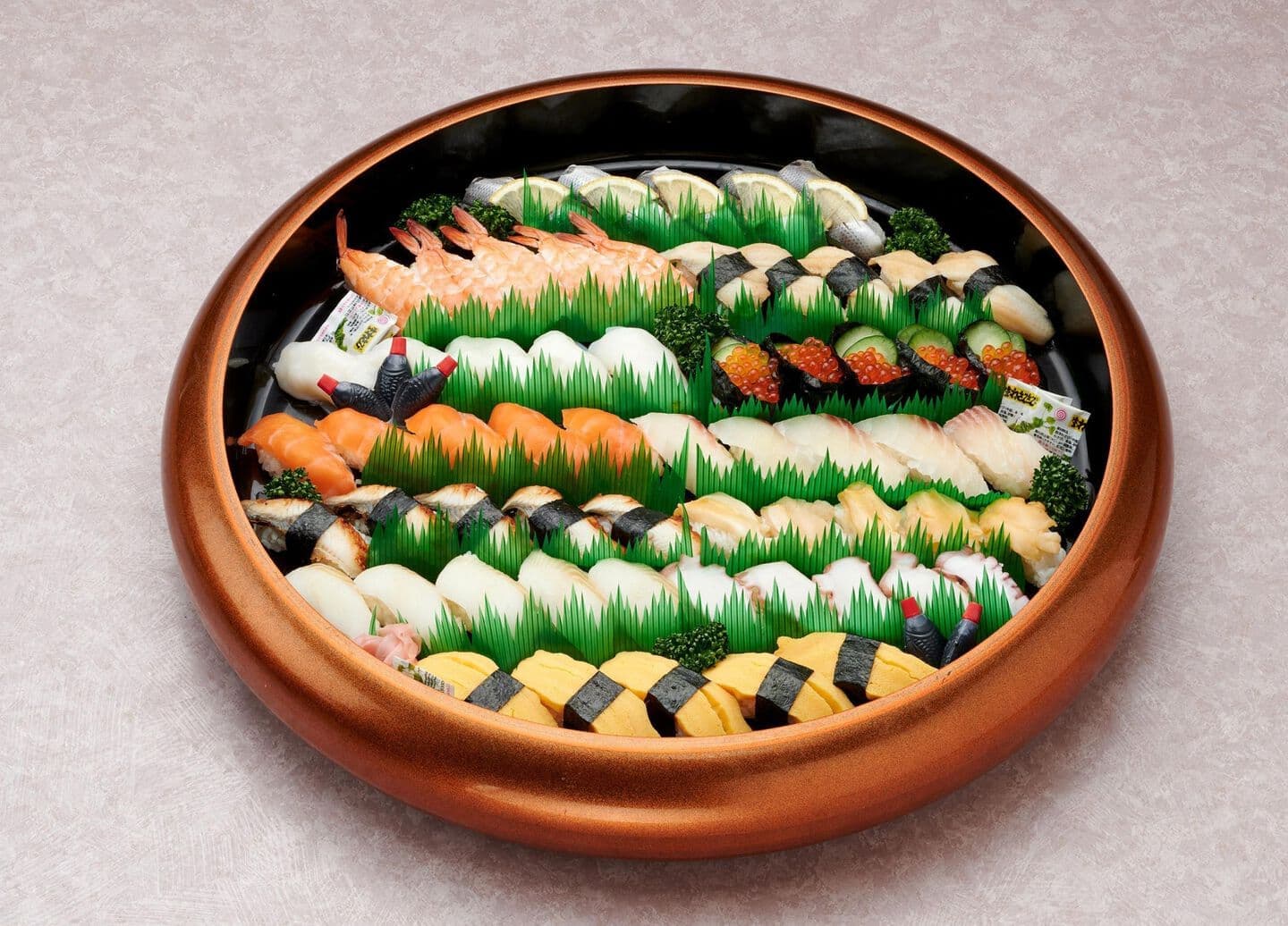 豪華なネタで彩り豊かなお寿司の盛り合わせ。