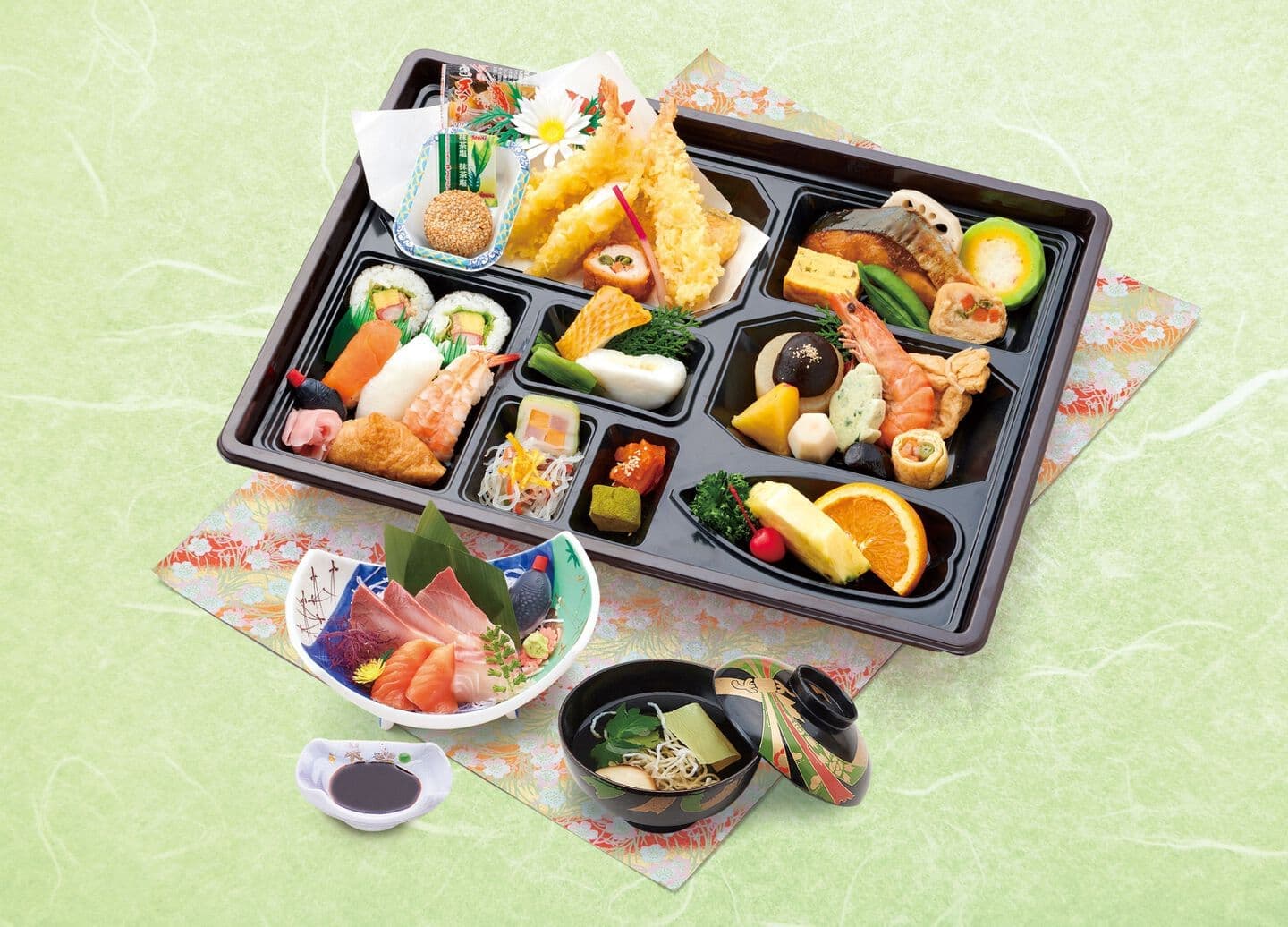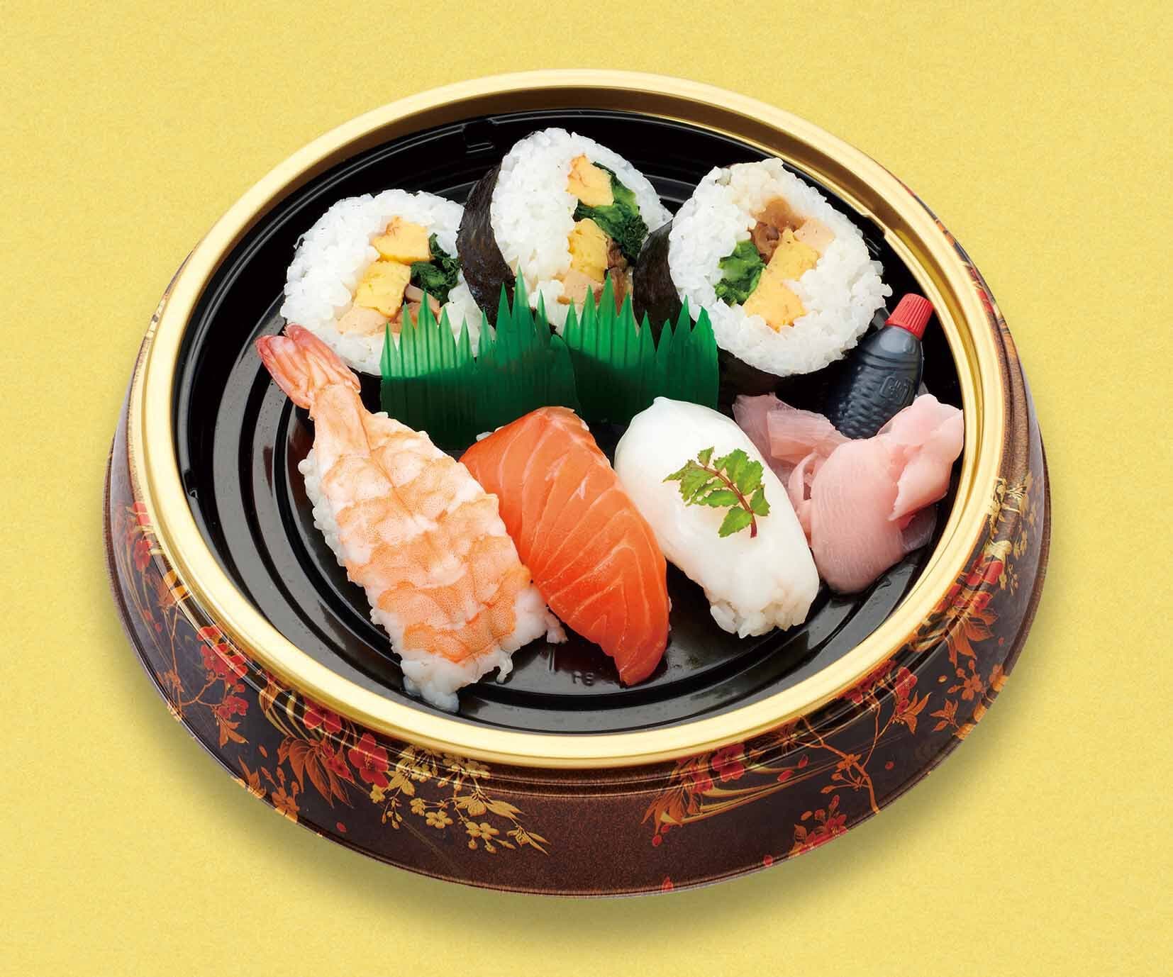 本膳、刺身、寿司、刺身、吸い物、茶碗蒸のセット