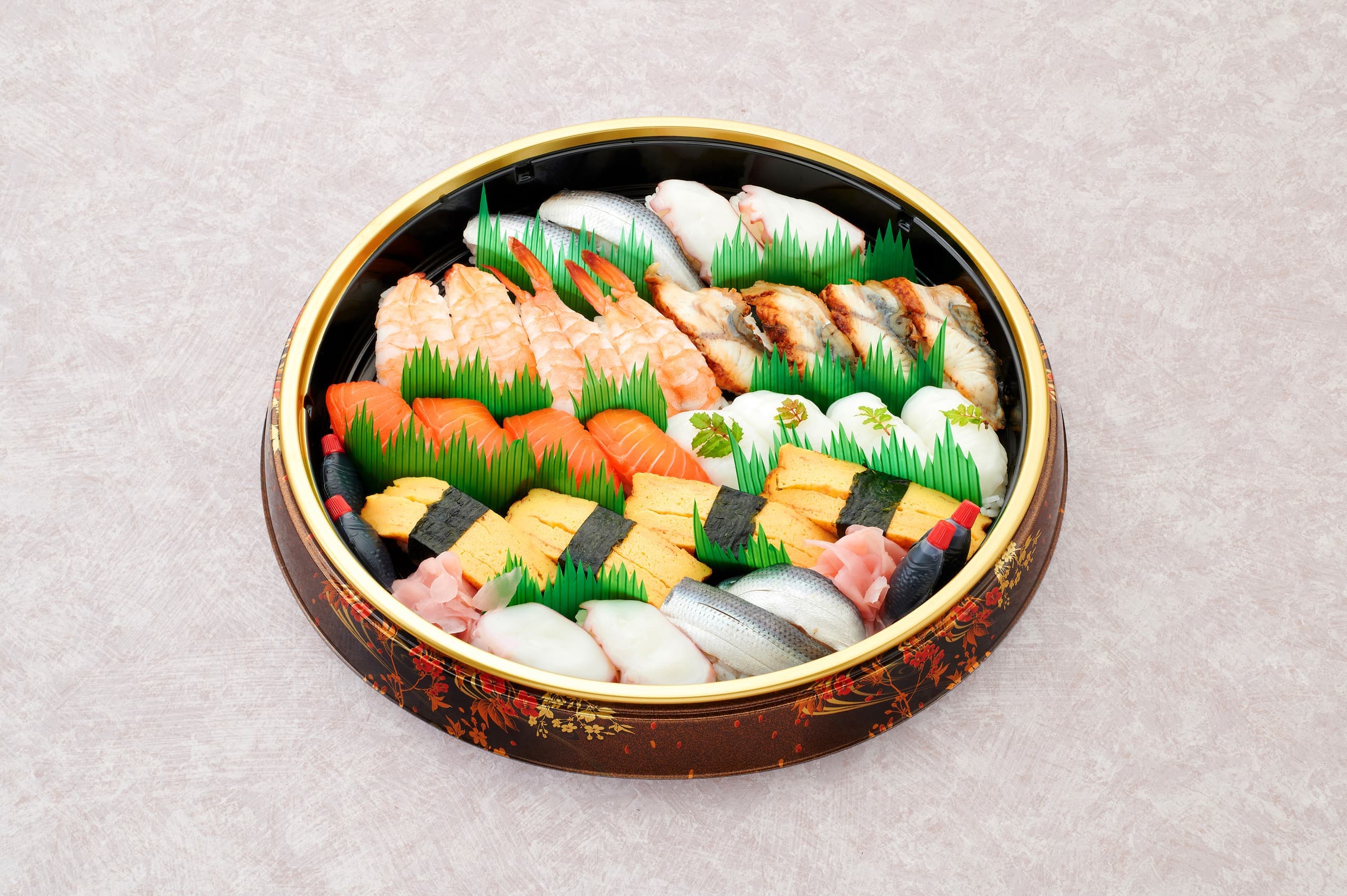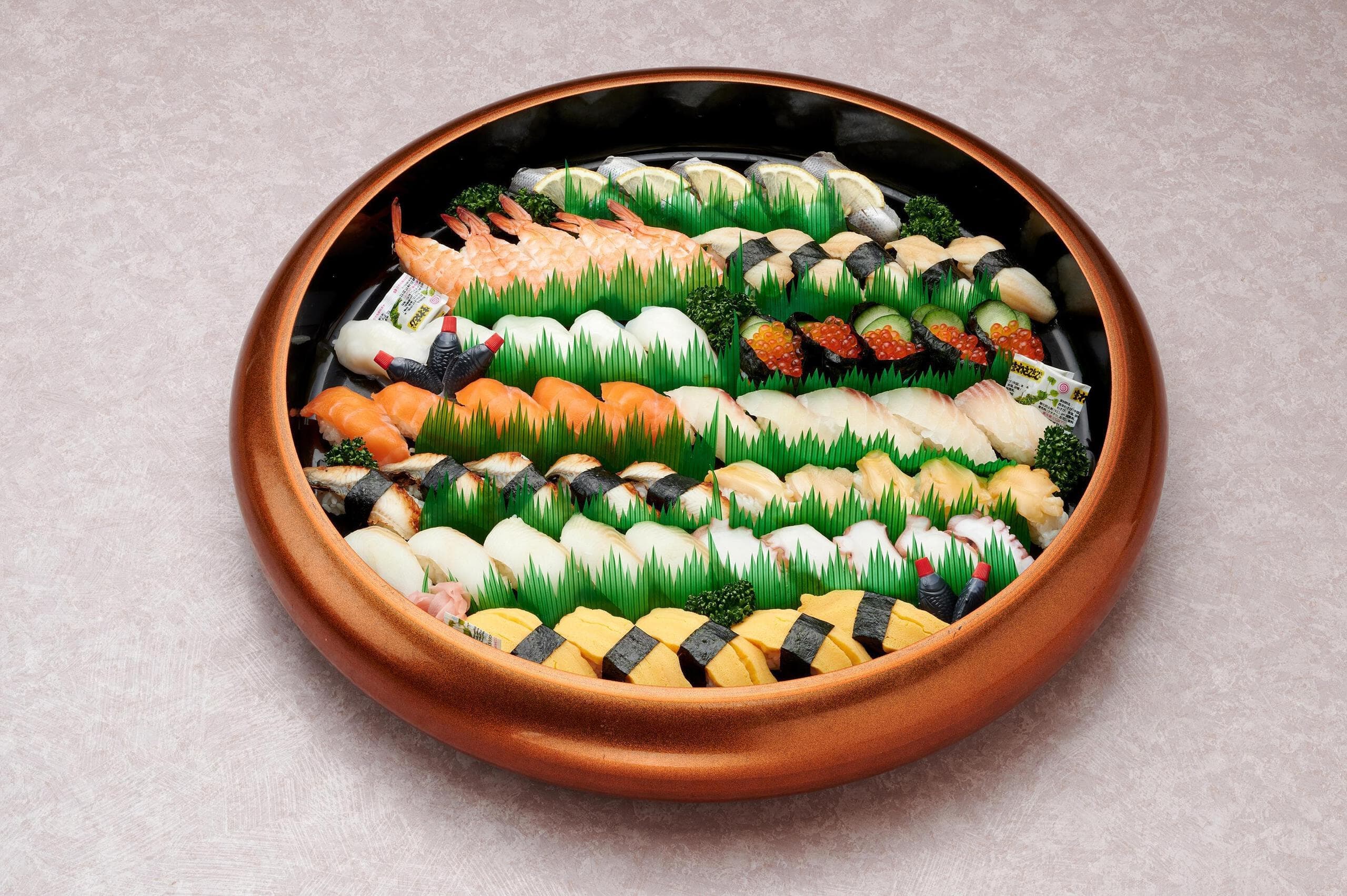 豪華なネタで彩り豊かなお寿司の盛り合わせ。