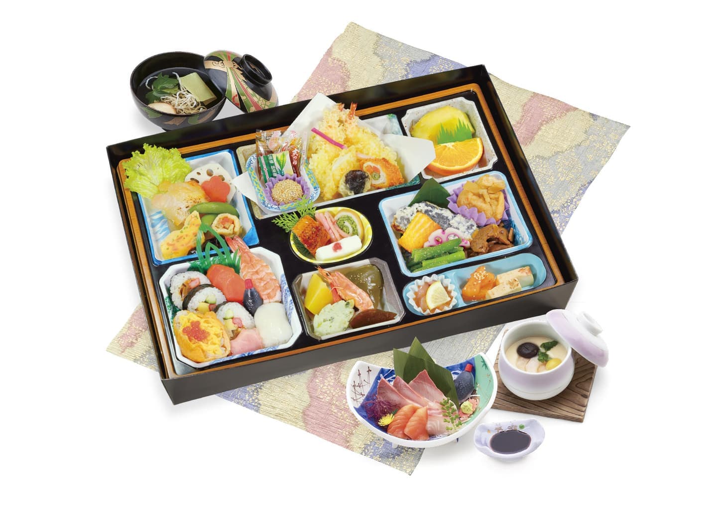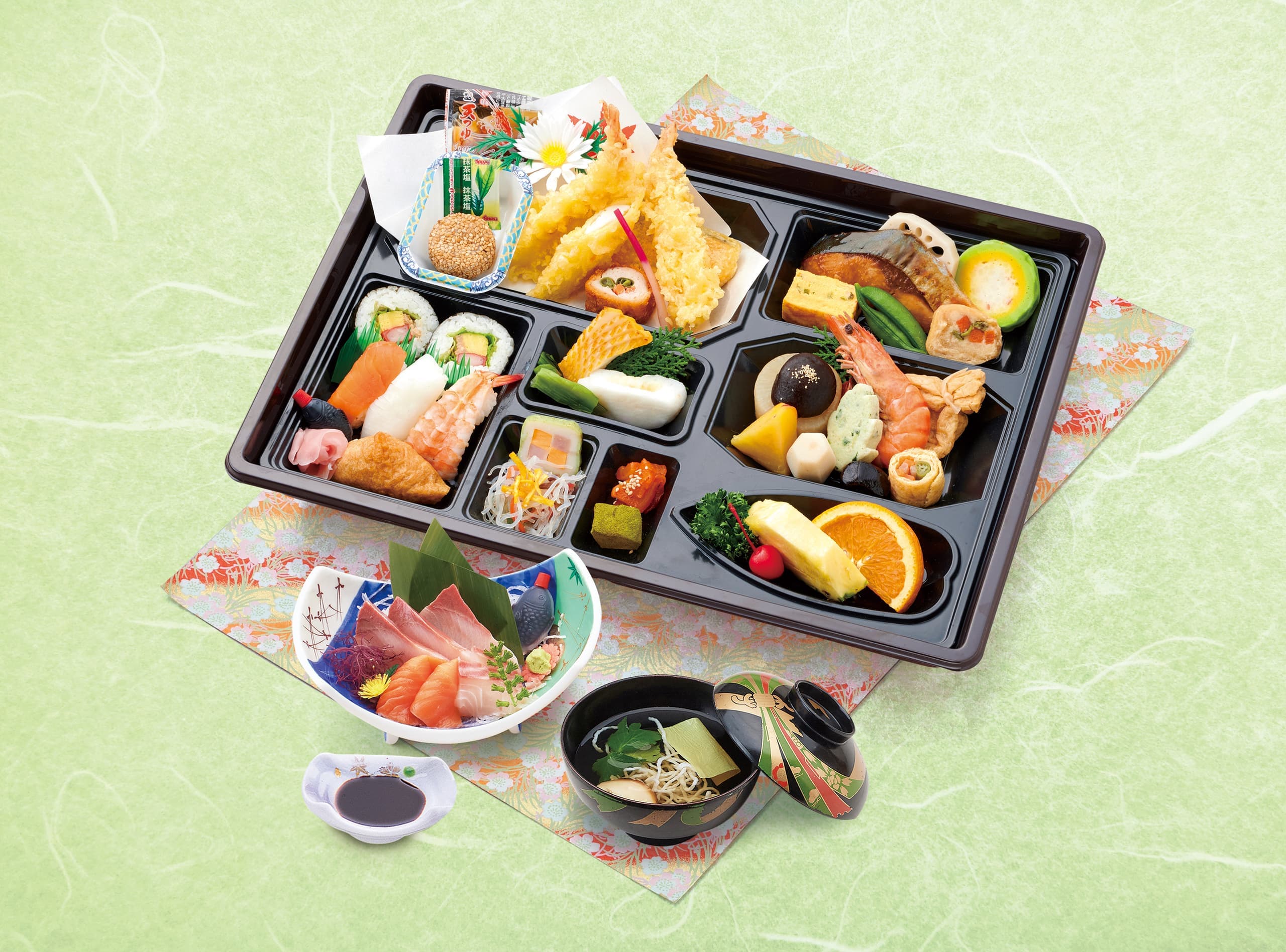 本膳、刺身、寿司、刺身、吸い物、茶碗蒸のセット